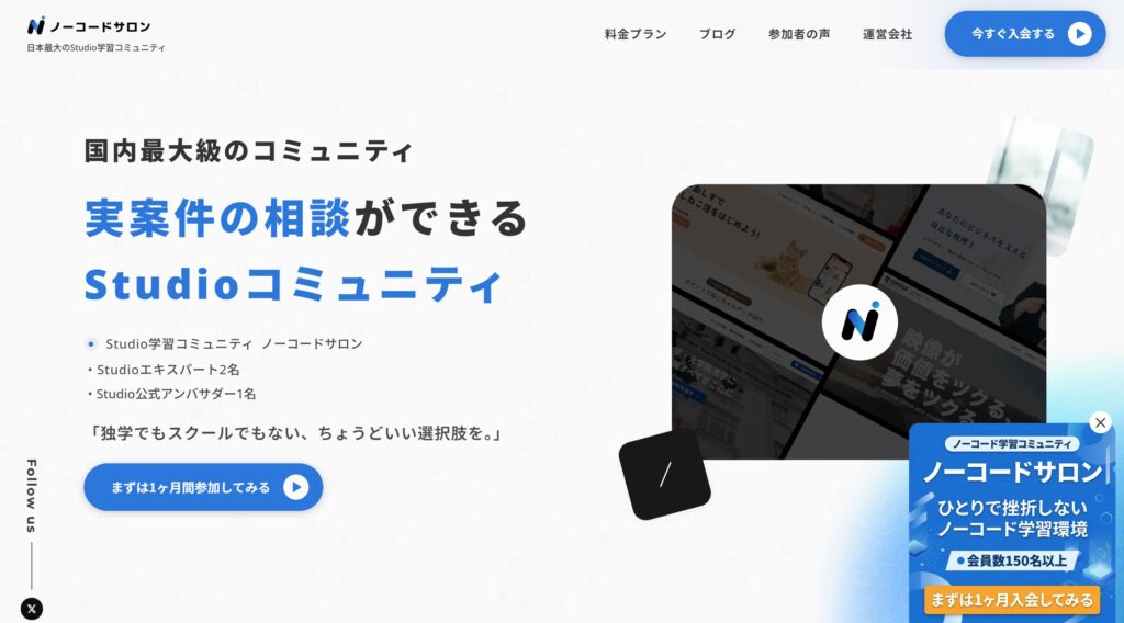 ノーコードサロンとは?特徴・口コミ・参加方法まで徹底解説【Studioが学べるコミュニティ】